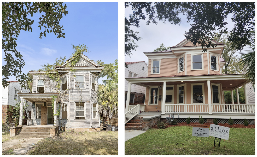 PHOTO: Throughout the month of May, Historic Savannah Foundation will highlight the success of the HSF Revolving Fund, which raises private money to purchase endangered historic properties, stabilizes them and sells them to preservation-minded buyers. Before and after photos of the c.1903 home at 706 East Henry Street in Savannah, Ga. demonstrate the transformation of more than 420 properties saved by HSF’s Revolving Fund.